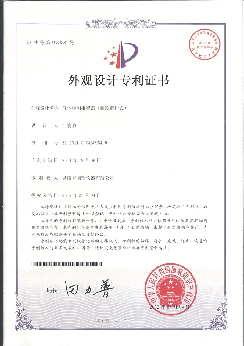 氣體檢測(cè)報(bào)警器外觀專利