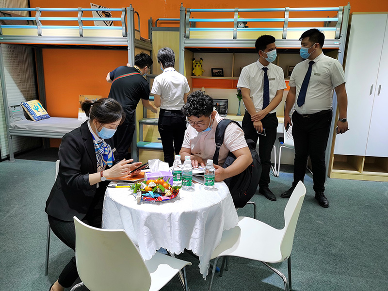 艾尚家具此次推出的新品全是圍繞環保安全而生,眾多客戶被此吸引。現場客戶更是絡繹不絕,紛紛為艾尚家具此次推出的新品豎起大拇指,火爆場面可想而知~