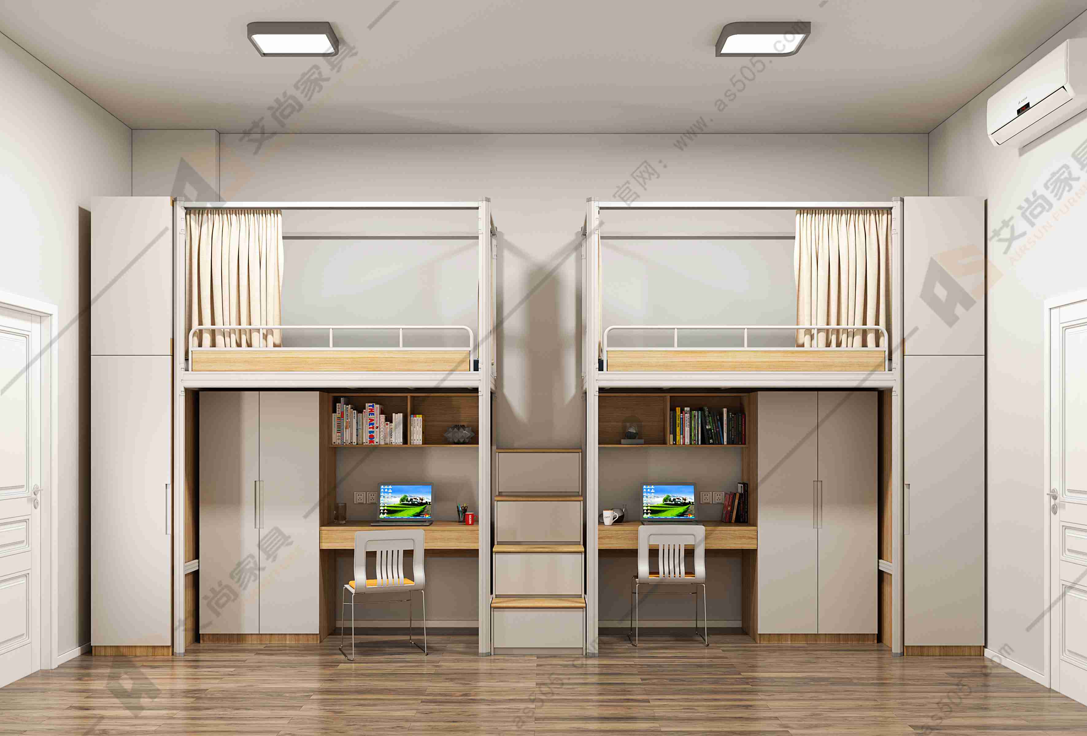 統一設計風格就是說讓宿舍空間看上去較為和諧,而不是同一種顏色。設想一下,假如所有的學生公寓床都是同一種顏色,不但會令人視覺疲勞,并且還缺乏質感。真實的統一設計風格是注重顏色配搭融洽,更有利于提升審美感。