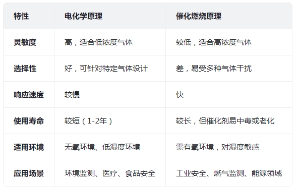 電化學(xué)原理和催化燃燒原理在氣體檢測(cè)中的應(yīng)用各有優(yōu)勢(shì)和局限性,其使用頻率取決于具體的應(yīng)用場(chǎng)景和需求。以下是兩者的對(duì)比分析: