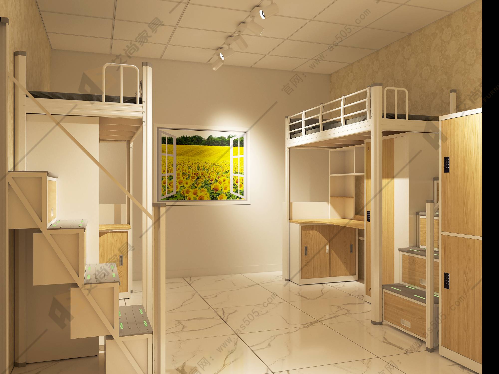 學校宿舍家具選擇的時候要從款式上考慮一下,根據宿舍入住的人數配套合適的學生公寓床,科學的提升宿舍空間的利用率,廣東艾尚家具可以免費提供宿舍家具配套方案3D圖,另外現在的學校宿舍一般都是6人起住一間,相對還是比較擁擠的,家具的款式應該是體現出人性化的一面,能夠讓使用起來很舒服,對人體不會有潛在的傷害,也不會有隱患。