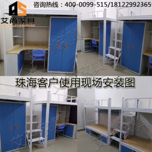 公寓床系列可以靈活多變,備有多款色彩可供選擇,配有不同配件,如底資料柜、邊桌、抽屜柜、書柜,可塑造出不同類型的學習與休息環(huán)境。一般的外形尺寸是1980*900*2080mm,是由床、書柜、衣柜、書桌和梯架組成。書柜和衣柜連接在床架床腿內(nèi)側,書桌將書柜、衣柜連在一起,床架有書柜的一頭安裝有梯架,床架的另一頭與梯架同側有護欄,書桌的桌面下有鍵盤支架和抽屜架。由于床是立體空間組合,不僅節(jié)省了空間,而且整齊美觀,又便于管理。